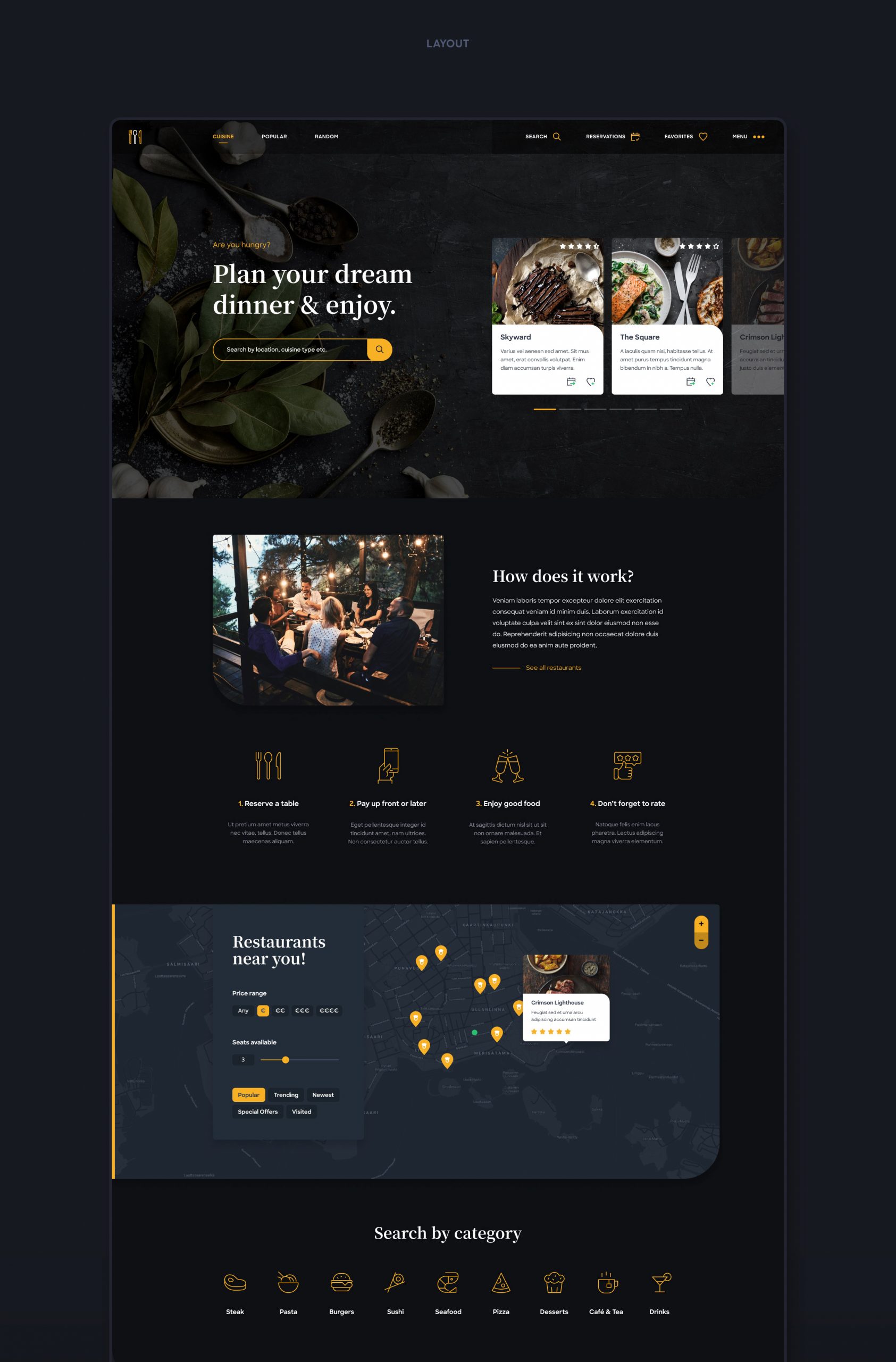 A personal project which I have been working on in my spare time. The purpose was to design a restaurant service theme where the user would be able to book and pay the dinner online.